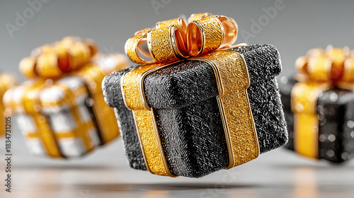 Black & Gold Glitter Gift Box Close-up - Floating Decor Holiday Gift Design Material