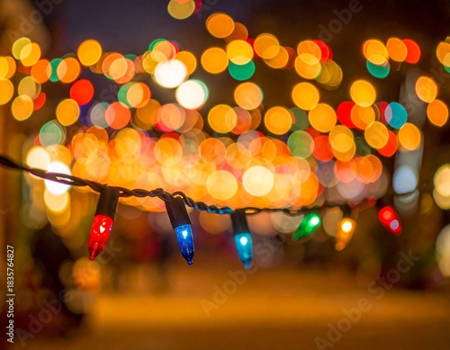 Eine bunte Lichterkette leuchtet warm in der Dunkelheit.