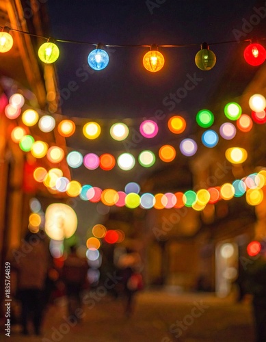 Eine bunte Lichterkette leuchtet warm in der Dunkelheit.