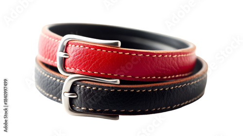 Stacked Red and Black Leather Belts - Fashion Accessories and Retail Goods