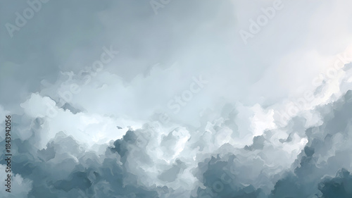 A serene artistic depiction of a soft blue and gray cloudy sky, creating an ethereal and peaceful background texture.