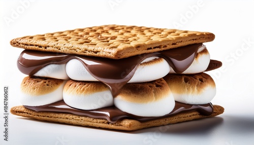 s mores graphic double decker graham cracker marshmallow chocolate sandwich isolated on white background food photography dessert s mores dessert food