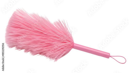 Fluffy pink feather duster isolated PNG on transparent background, cleaning tool for dusting furniture and removing cobwebs