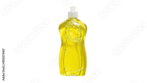 Isolated bottle of dish soap for the kitchen, yellow detergent for washing dishes, liquid gel