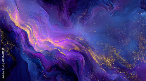 宇宙の星雲を思わせる紫と青の流体アート背景