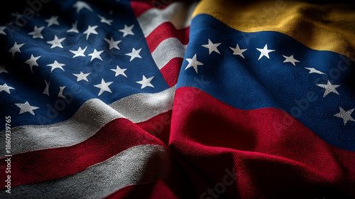 Cultural exchange event united states and venezuela flag display textile art indoor setting close-up view national identity