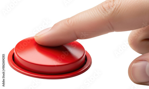 3d red button being pressed by finger transparent background cutout png