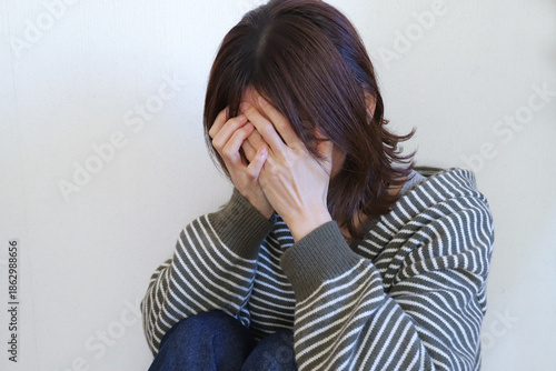 顔を覆って悲しむ女性