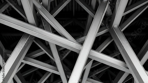disequilibrium. Structural lattice of intersecting steel I-beams forming a repeating geometric pattern. real-estate listings.
