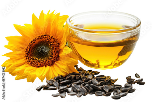 Bowl of sunflower oil displayed on clean white background isolated on transparent background
