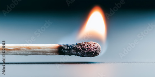 火災リスクを連想するマッチの炎 ブルートーン背景 広告用