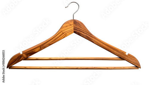 A wooden clothes hanger, detailed close-up, isolated on a black background