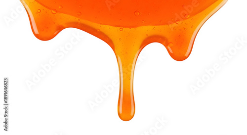 Glossy bright orange syrup drips with juicy citrus texture and smooth sweet glaze, isolated on white or transparent background. PNG