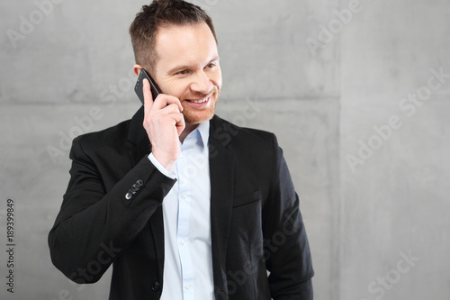 Doradca klienta. Biznesmen rozmawia przez telefon.