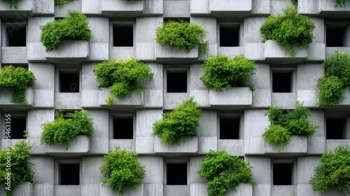 Modern architectural design featuring concrete wall with green plants integrated into the structure, showcasing innovative urban greenery concept