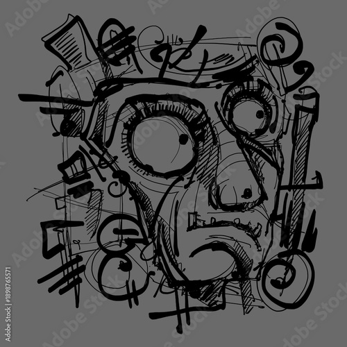 Abstract face. Abstract image for printing. Picture for modern interiors. The picture is painted by hand on a tablet.