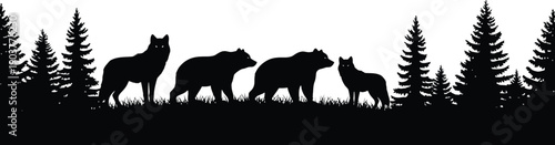 Forest Wildlife Silhouettes Wolves and Bears in a Pine Landscape