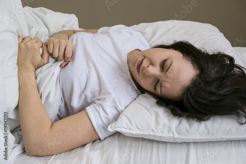 Asian woman stomachache, feel pain for period concept