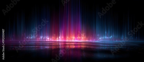 Glowing neon light trails on dark background high resolution photo