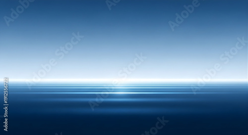 A serene blue abstract background showcases horizontal light streaks reflecting on a calm surface.