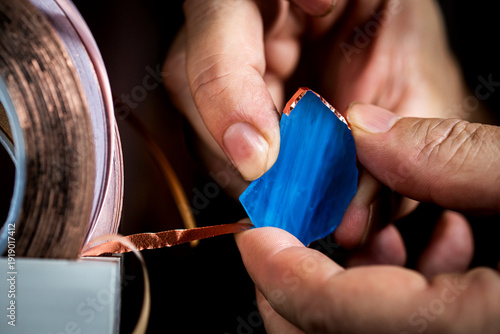 foiling pieces of stained glass with copper foil