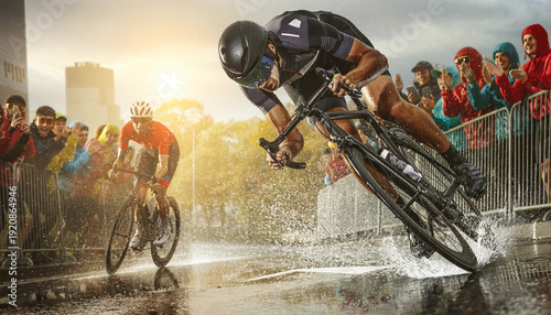 Kolarz na trasie, pokonujący dystans na rowerze w bardzo szybkim tempie