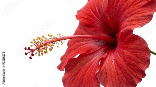 Vibrant red tropical hibiscus flower isolated on white background cutout