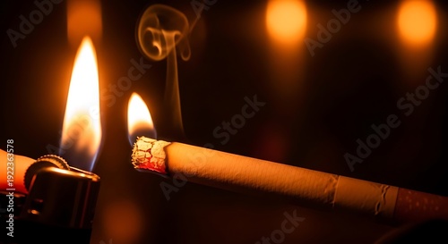Cigarette being lit in the dark.
