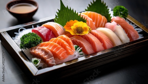signature sashimi tray of harmony crafted with spirit and precision in its artistic selection presentation