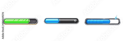 Game energy bar icon isolated on white background no shadow, RPG stamina bar barra de energía 能量条 health meter progress UI 3D render gaming asset PNG clipart transparent