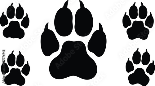 Collection of black bear paw prints on white background
