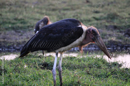 duży brzydki ptak marabut afrykański z bliska brodzącyna mokradłach