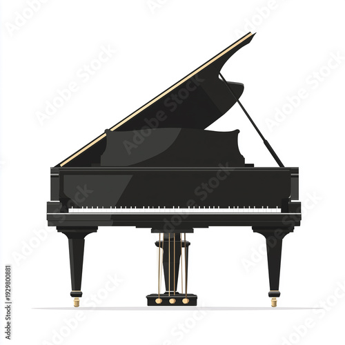 Elegancki, czarny fortepian koncertowy na prostym tle. Instrument emanuje klasyczną estetyką, będąc synonimem muzycznej maestrii i doskonałości.