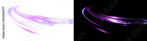 Curved neon purple and magenta light trail with glow and motion blur. Futuristic abstract speed streak for overlays, gaming, sci-fi, energy effects, and dynamic design.