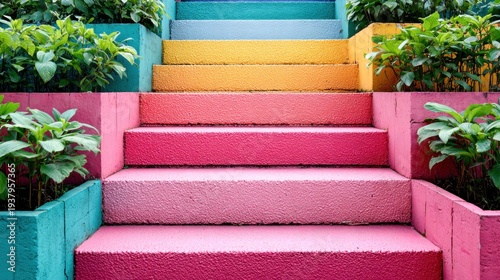 Colorful outdoor staircase with vibrant hues