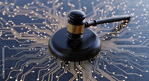 Gavel resting on a circuit board symbolizing technology and law convergence