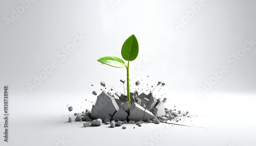 Resilience - A green sprout emerging from broken concrete, symbolizing hope and growth.