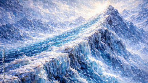 氷河に覆われた雪山と冬の壮大な山岳風景イラスト