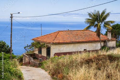 Traditional old house with tiled roof overlooking the Atlantic ocean on Madeira island | Tradycyjny stary dom z dachem krytym dachówką z widokiem na Ocean Atlantycki na Maderze