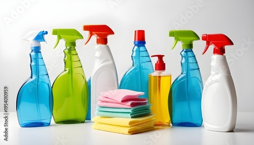 cleaning product bottles set against a white backdrop