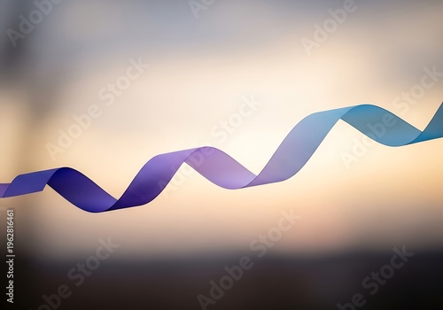 Wavy gradient ribbon floating in serene sky environment backdrop