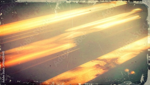 Abstrakcyjne, retro światło słoneczne przechodzące przez stare, porysowane klatki filmu z efektem poświaty.