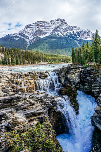 Athabasca Falls, Canada - waterfall with mountains in the background