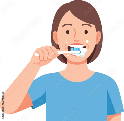 Flat Graphic Woman Brushing Teeth Illustration for Health and Hygiene Awareness