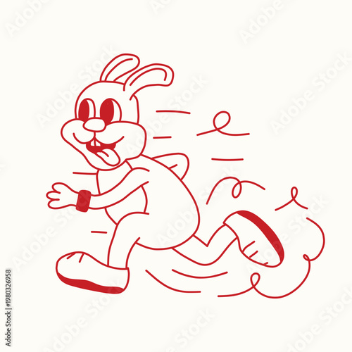 rabbit running retro cartoon character illustration