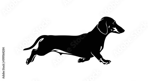 Dynamic vector outline of a dachshund walking in a classic side profile. transparent.