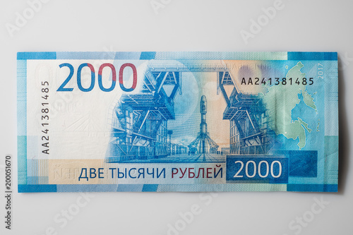 New russian banknotes on white background. 2000 rubles. Vladivostock. Russian money.