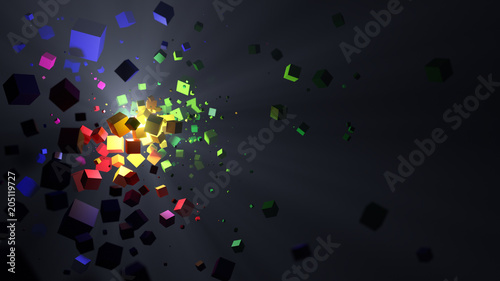 Abstrakter bunter Hintergrund mit einer Explosion aus Würfeln