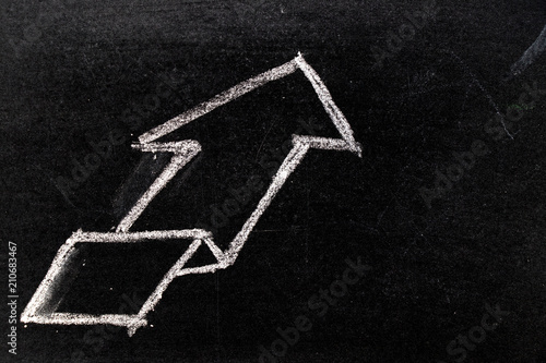 White chalk hand drawing in uptrend arrow shape on blackboard background