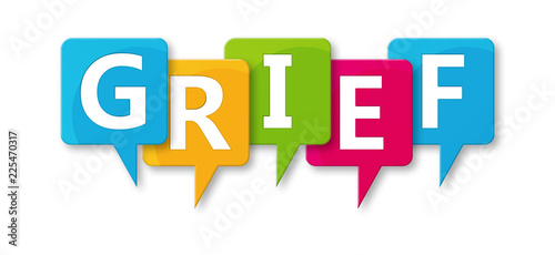 Grief - letters written in beautiful boxes on white background